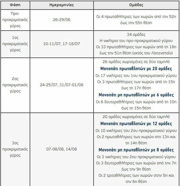 19 Ιουνίου: Κλήρωση 1ου και 2ου προκριματικού γύρου