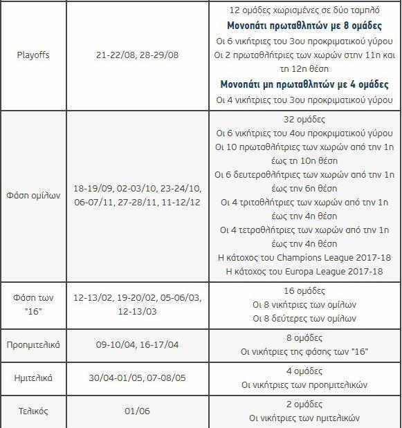 Οι ημερομηνίες από την αρχή ως το τέλος της διοργάνωσης:
