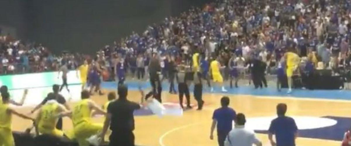 Οι μπουνιές και οι κλωτσιές δεν άργησαν μάλιστα να εξελιχθούν σε... καρεκλιές, με έναν παίκτη των Φιλιππίνων να πετάει μια καρέκλα σε αντίπαλό του, όπως ακριβώς είχε κάνει ο Νέναντ Κρστιτς σε βάρος του Γιάννη Μπουρούση το καλοκαίρι του 2010.