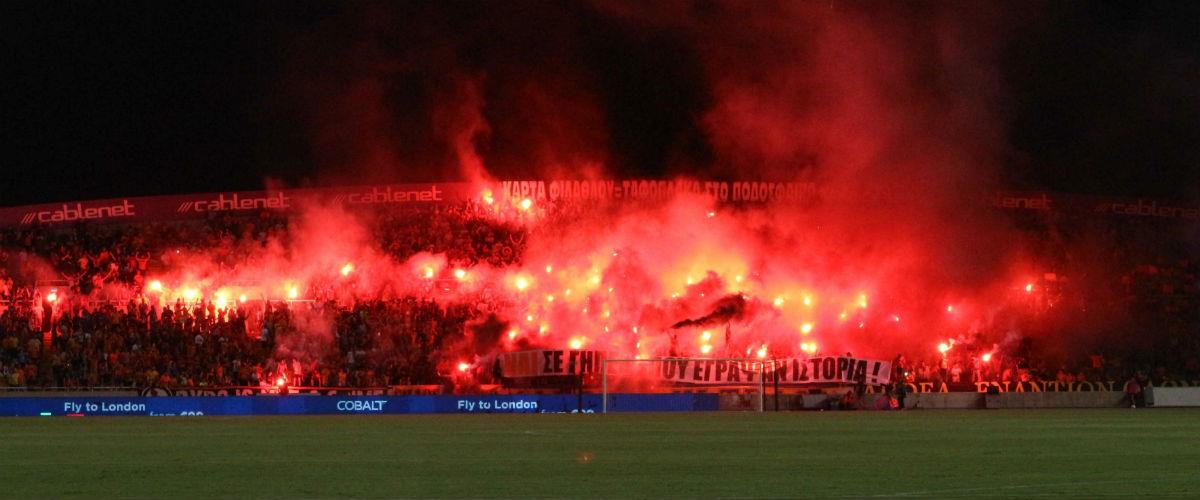 ΒΙΝΤΕΟ: Με φωτοβολίδες και πυροτεχνήματα η είσοδος του ΑΠΟΕΛ