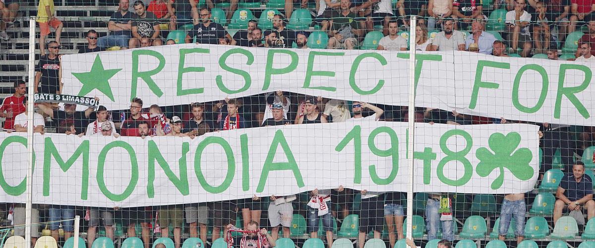 Τη συμπαράστασή τους προς την Ομόνοια 1948 εξέφρασαν οι οπαδοί της αντίπαλης ομάδας της ΑΕΚ, Τρέντσιν, για το πρώτο παιχνίδι των πλέι οφ του Γιουρόπα Λιγκ.
