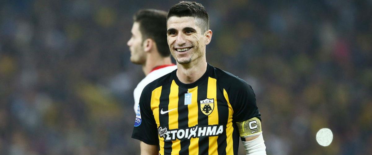 Ο Έλντερ Λόπες ανατράπηκε από τον Φιόλα στην μεγάλη περιοχή και ο αρχηγός της ΑΕΚ δεν αστόχησε από το σημείο του πέναλτι για το 1-0 της ΑΕΚ.
