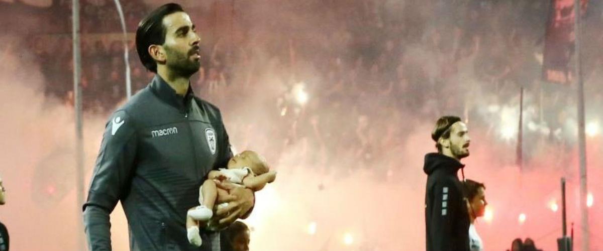 Οι ποδοσφαιριστές του ΠΑΟΚ και της ΑΕΚ βγήκαν στον αγωνιστικό χώρο, με τους οπαδούς των γηπεδούχων να δημιουργούν «καυτή» ατμόσφαιρα, ενώ ο στόπερ του «Δικέφαλου του Βορρά» πρωτοτύπησε, κρατώντας το μόλις 1,5 μήνα παιδί του στην αγκαλιά του!