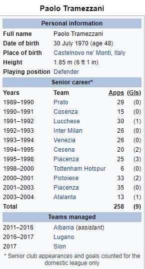 Ο Ιταλός κόουτς, το 2017 βρισκόταν στον πάγκο της Σιόν, ενώ προηγουμένως είχε τα ηνία της Λουγκάνο. Επίσης, για μια πενταετία στο παρελθόν είχε την ευθύνη του βοηθού προπονητή στην Εθνική Αλβανίας.