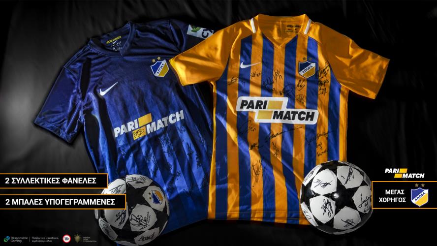 Η Parimatch, μέγας χορηγός του ΑΠΟΕΛ, πραγματοποιεί Facebook διαγωνισμό και προσφέρει 2 συλλεκτικές φανέλες και 2 μπάλες υπογεγραμμένες από τους παίκτες του ΑΠΟΕΛ. Ο διαγωνισμός ισχύει μέχρι τις 5 Νοεμβρίου.