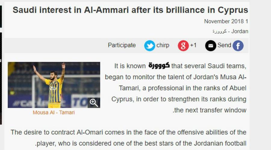«Επαγγελματικές ομάδες της Prince Mohammed Bin Salman (δεύτερη τη τάξει κατηγορία στη Σαουδική Αραβία) προετοιμάζονται να προσφέρουν γενναιόδωρες προσφορές στον Ιορδανό παίκτη για να τον πείσουν να διακόψει το επαγγελματικό του ταξίδι στην Ευρώπη και να επιστρέψει στη Μέση Ανατολή» αναφέρεται στην ιστοσελίδα kora.com για τον 21χρονο εξτρέμ.