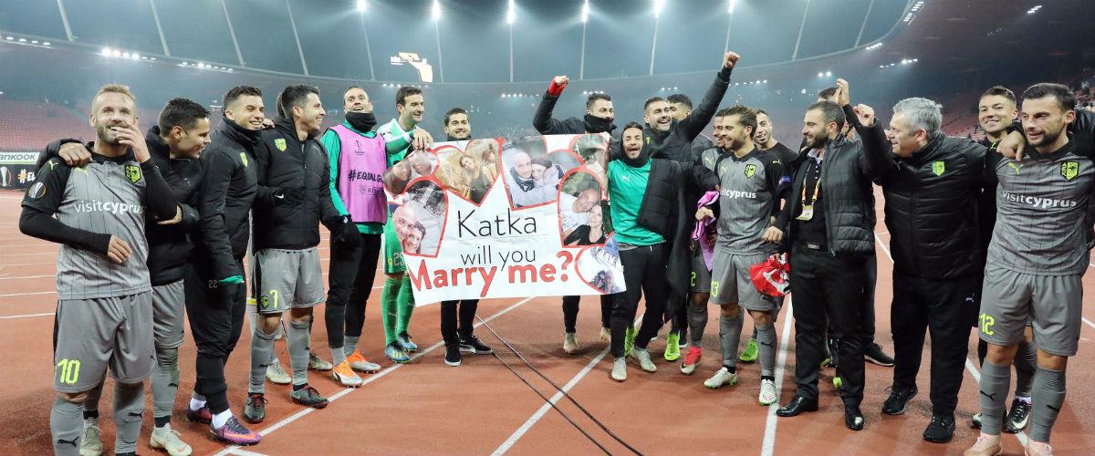 Συγκεκριμένα κράτησαν πανό που… ρωτούσαν την Κάτκα αν θα κάνει δεκτή την πρόταση γάμου του Νικόλα, οπαδού της ομάδας.