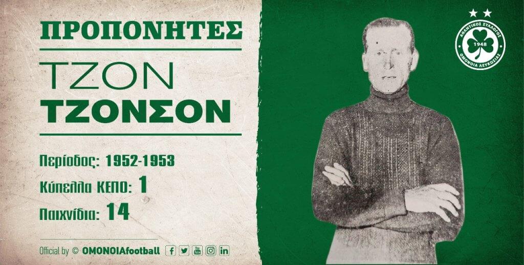 Συνέχεια στην ιστορική ενότητα «προπονητές», δίνει η Ομόνοια με ιδιαίτερη αναφορά που κάνει στον Τζον Τζόνσον.