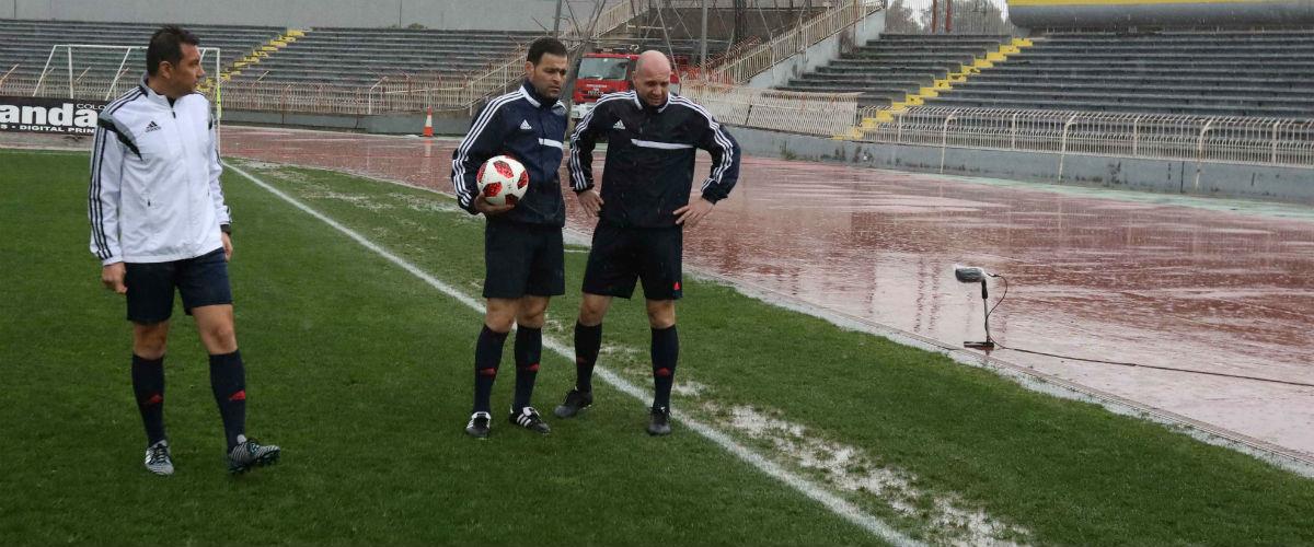 Την απόφαση όπως μην διεξαχθεί ο αγώνας ανάμεσα στην Δόξα και τον ΑΠΟΕΛ πήρε ο διαιτητής Λούκας Σωτηρίου μετά την εξέταση που έγινε στον αγωνιστικό χώρο του Μακαρείου.