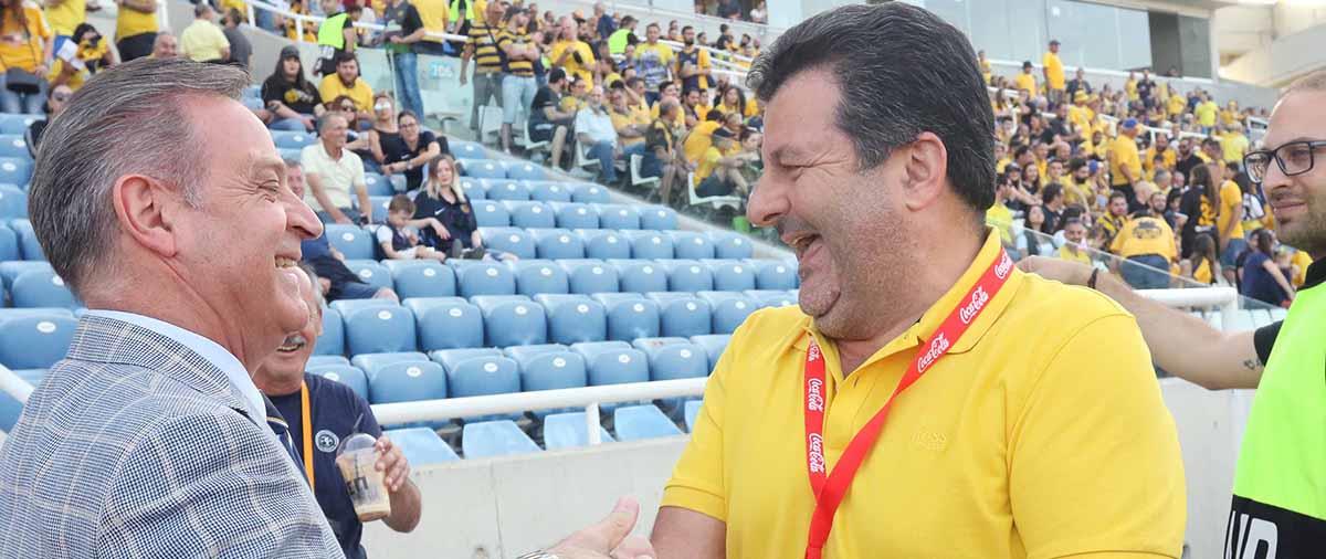 Ο πρόεδρος του ΑΠΟΕΛ και ο ομόλογός του της ΑΕΛ εμφανίστηκαν εξαιρετικά ευδιάθετοι, όπως αποδεικνύουν και τα κλικς του φωτογραφικού φακού που απαθανάτισε το συναπάντημά τους.