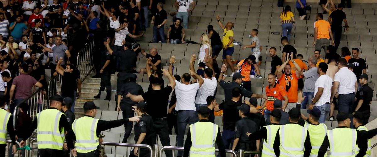Πιο συγκεκριμένα, στο 68' όταν σημειώθηκε το 2ο γκολ των γαλαζοκιτρίνων με τον Ούρος Μάτιτς, υπήρχαν οπαδοί των γηπεδούχων που έτρεξαν απειλητικά προς το μέρος αυτών του ΑΠΟΕΛ.