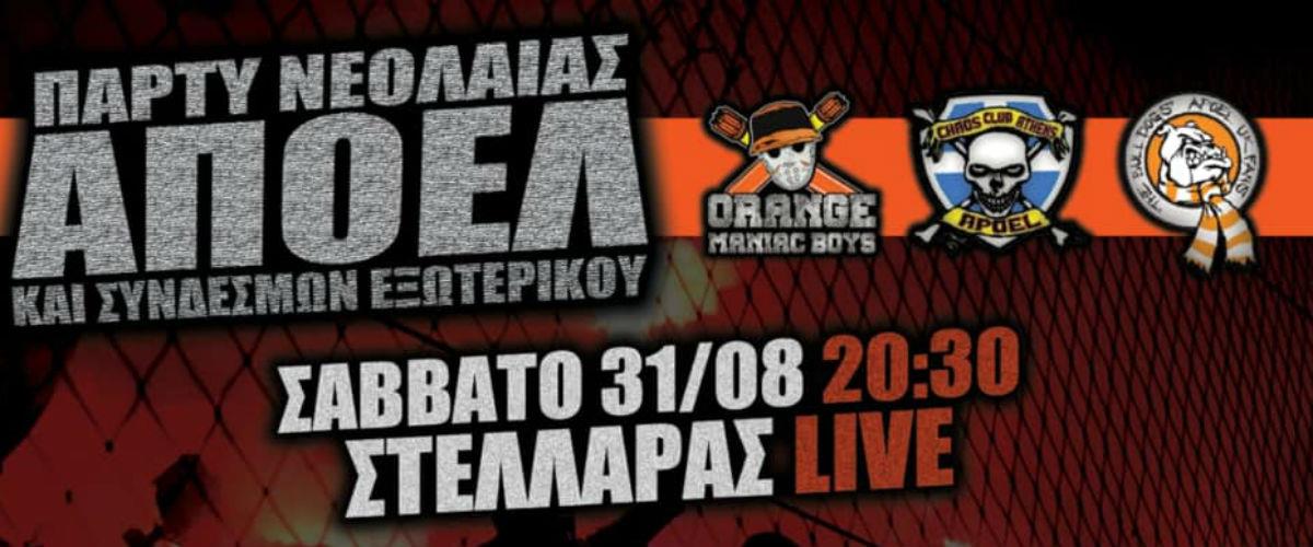 Σε ανακοίνωση τους οι οργανωμένοι οπαδοί του ΑΠΟΕΛ, αναφέρουν πως «η μαθητική νεολαία του Παν.Συ.Φι. μετά από συνεννόηση με τους συνδέσμους εξωτερικού, διοργανώνουν πάρτι που θα Μουσική live με τον Στελλάρα και 2 νικητές θα ακολουθήσουν την ομάδα μας στο επόμενο ευρωπαϊκό της ταξίδι. Για κρατήσεις αποταθείτε με μήνυμα στις σελίδες Orange Maniac Boys - ΑΠΟΕΛ μαθητικό, Chaos Club Athens APOEL».