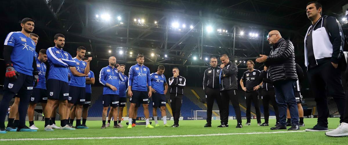 Ο πρόεδρος της Ομοσπονδίας, μίλησε μετά το τέλος της προπόνησης στους ποδοσφαιριστές, ζητώντας τους να τα δώσουν όλα στον αυριανό δύσκολο αγώνα.