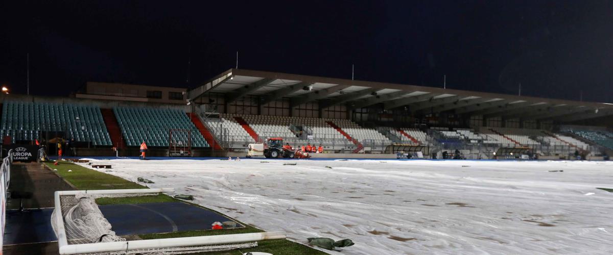 Όπως μπορείτε να δείτε στις φωτογραφίες που ακολουθούν, ο αγωνιστικός χώρος του γηπέδου είναι καλυμμένος με αδιάβροχα πανιά, ενώ και ο καιρός στη χώρα είναι βροχερός. Ως εκ τούτου, οι γαλαζοκίτρινοι δεν είδαν το γρασίδι που τοποθετήθηκε για το αυριανό (28/11) παιχνίδι.