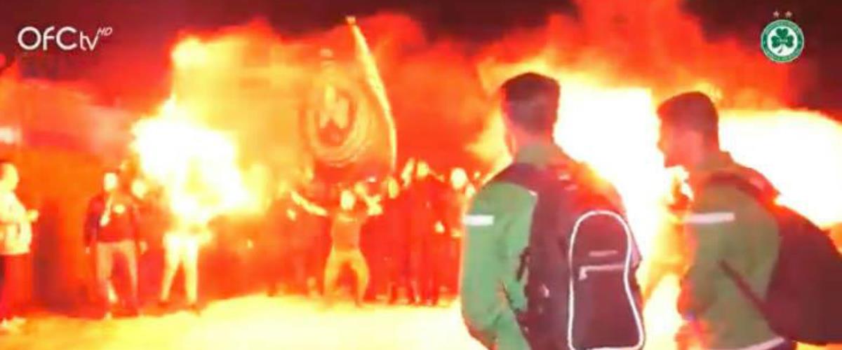 Εν όψει του αγώνα της Δευτέρας, οι οργανωμένοι φίλοι των πρασίνων, ταξίδεψαν στο Ηλίας Πούλλος, όπου υποδέχτηκαν την ομάδα λίγο πριν την προπόνηση της.