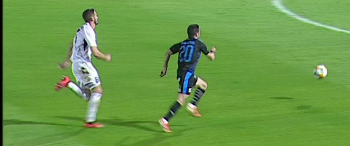 Η φάση, ξεκίνησε από τα πόδια του Παπουλή, όπου προσπάθησε να βρει τον Πέδρο μέσα στην περιοχή. Ο Μαρτίνος ΄Χριστοφή, έβαλε την κόντρα με την μπάλα, να φτάνει στο πόδι του Μπένσοπ. Ο επιθετικός από το Κουρασάο, με δυνατό πλασέ, νίκησε τον Γκράσα, για το 1-0.