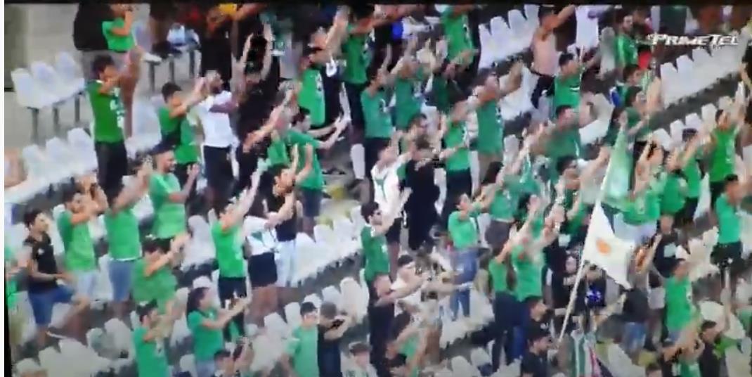 Με την είσοδο των παικτών της Ομόνοιας στον αγωνιστικό χώρο, οι χιλιάδες φίλοι των πρασίνων φώναζαν συνθήματα και χειροκροτούσαν τους ποδοσφαιριστές αποθεώνοντας τους και δείχνοντας την στήριξη τους.