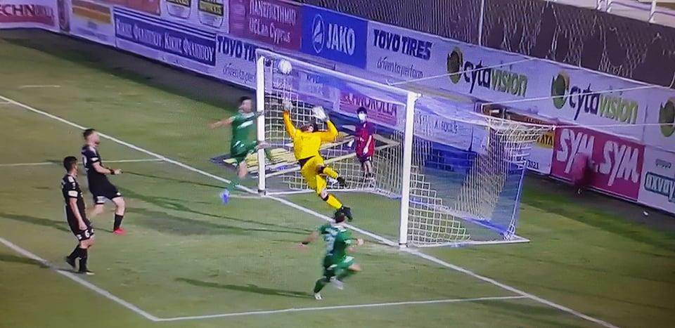 Από την επαναληπτική προβολή ωστόσο, δεν ξεκαθαρίζεται αν ο Σλοβάκος ακούμπησε την μπάλα προτού ή μετά που πέρασε τη γραμμή του τέρματος.