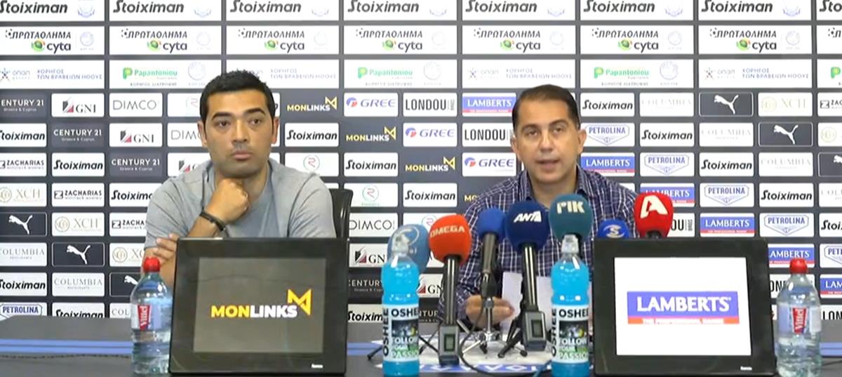 Σε ερώτηση για την επιλογή προπονητή είπε «δεν θα αλλάξει. Τον πρώτο και τον τελευταίο λόγο έχω εγώ. Όπως είχα όταν φέραμε τον Χριστάκη από τις Ladies, όπως είχαμε τον Αυγουστή από την Β’ ομάδα, όπως είχαμε την επιλογή Βουκομάνοβιτς που δεν πέτυχε, όπως είχαμε τον κ. Πετράκη. Με τον ίδιο τρόπο θα συνεχίσουμε. Τον πρώτο και τον τελευταίο λόγο τον έχω εγώ και κανένας άλλος. Δεν αλλάζει το μοντέλο. Συζητώ με τους συνεργάτες μου αλλά η τελευταία απόφαση είναι δική μου».