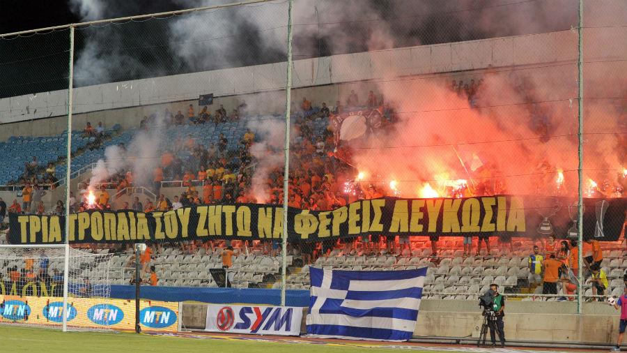 Το πανό έγραφε: «Τρία τρόπαια σου ζητώ να φέρεις Λευκωσία», τονίζοντας με αυτό τον τρόπο ότι έχουν μεγάλες απαιτήσεις από την ομάδα και αυτή τη χρονιά.