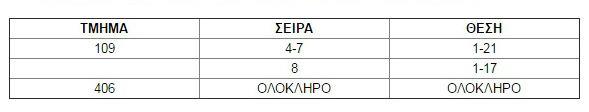 Για κατόχους διαρκείας που μετακινούνται σύμφωνα με τη λίστα πιο κάτω και επιθυμούν να διεκδικήσουν θέση σε άλλο τμήμα: