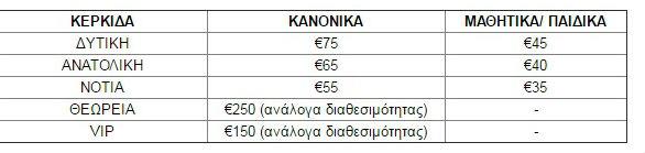 (εφόσον θα υπάρχουν διαθέσιμα εισιτήρια μετά την προπώληση των πακέτων)