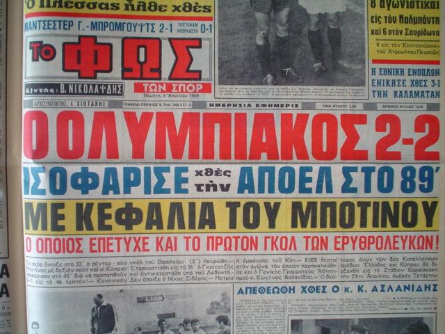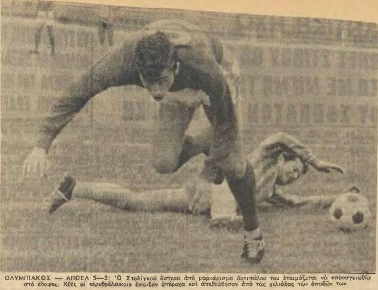 Τη σεζόν 1973-74, στο δρόμο προς την παραμονή στην Α’ Εθνική, ο ΑΠΟΕΛ έχασε δύο φορές από τον Ολυμπιακό Πειραιώς. Με 1-0 στο ΓΣΠ και 3-0 στο «Γ. Καραϊσκάκης» (υπάρχει σχετικό βίντεο).