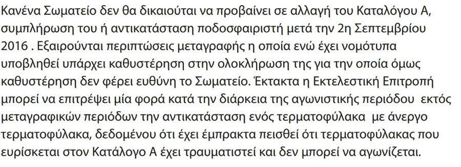 Πάντως, εφόσον οι ιθύνοντες της Ομόνοιας επιθυμήσουν να προχωρήσουν σε μεταγραφή πορτιέρε έχουν τη δυνατότητα να το πράξουν σύμφωνα με την προκήρυξη που αφήνει «παραθυράκι» στις ομάδες σε περίπτωση τραυματισμού του τερματοφύλακα.