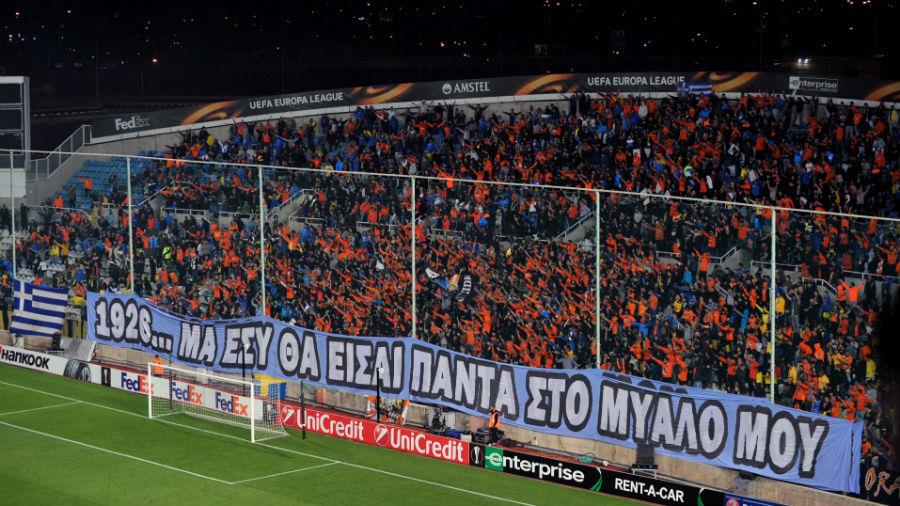 Ξεχώρισε η εναλλαγή του πανό που ύψωσαν οι οργανωμένοι φίλοι της ομάδας.