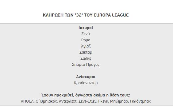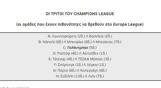 Αυτές είναι οι Ζενίτ (4ος όμιλος), Ρόμα (5ος όμιλος), Άγιαξ (7ος όμιλος), Σαχτάρ (8ος όμιλος), Σάλκε (9ος όμιλος) και Σπάρτα Πράγας (11ος όμιλος).