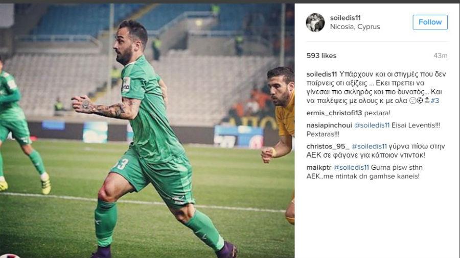 To μήνυμα του Έλληνα ποδοσφαιριστή μετά το ντέρμπι με τον ΑΠΟΕΛ«Γίνεσαι πιο σκληρός και πιο δυνατός» είναι το μήνυμα του Άρη Σοϊλέδη μετά το ντέρμπι με τον ΑΠΟΕΛ. Ο Έλληνας ποδοσφαιριστής της Ομόνοιας πόσταρε στο instagram το πιο κάτω μήνυμα: