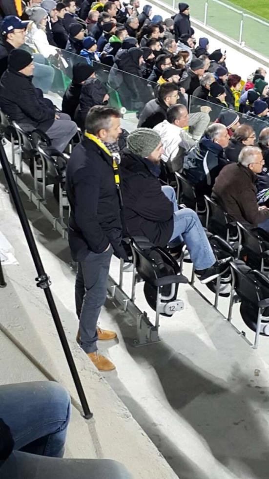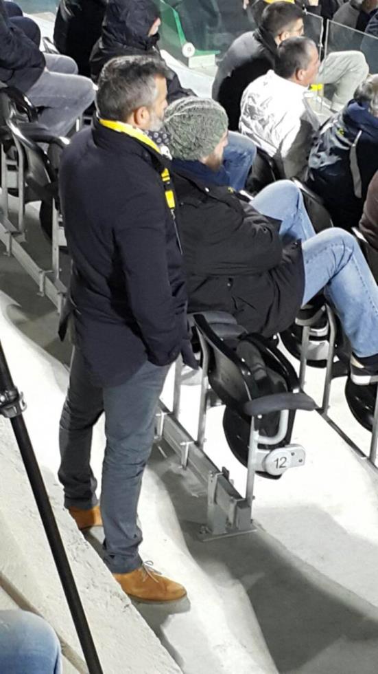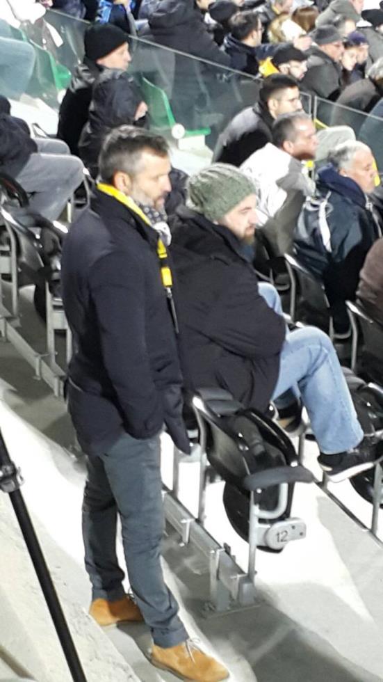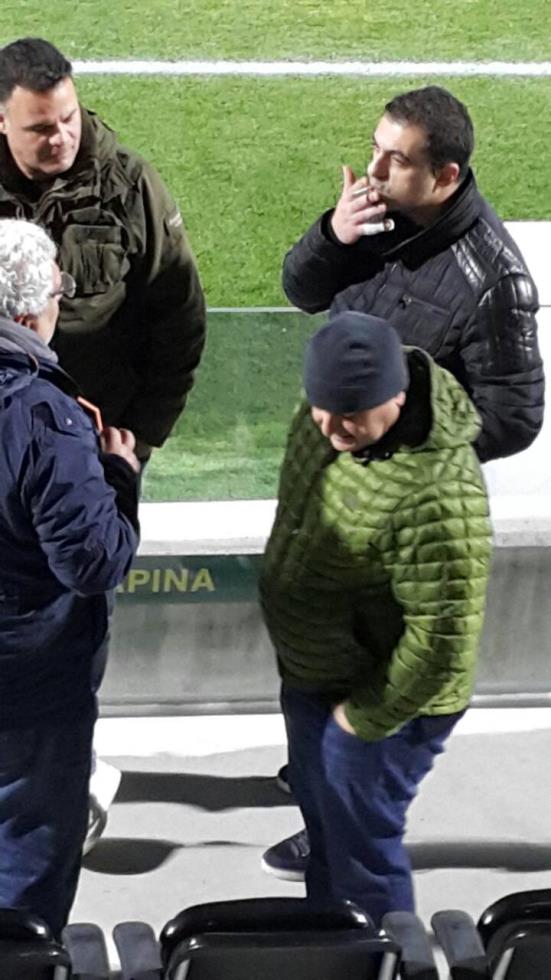 Ο τεχνικός διευθυντής της ΑΕΚ όχι μόνο ήταν όρθιος αλλά έκανε συνεχώς… ανήσυχες βόλτες στα επίσημα του γηπέδου παρακολουθώντας με αγωνία την αναμέτρηση.