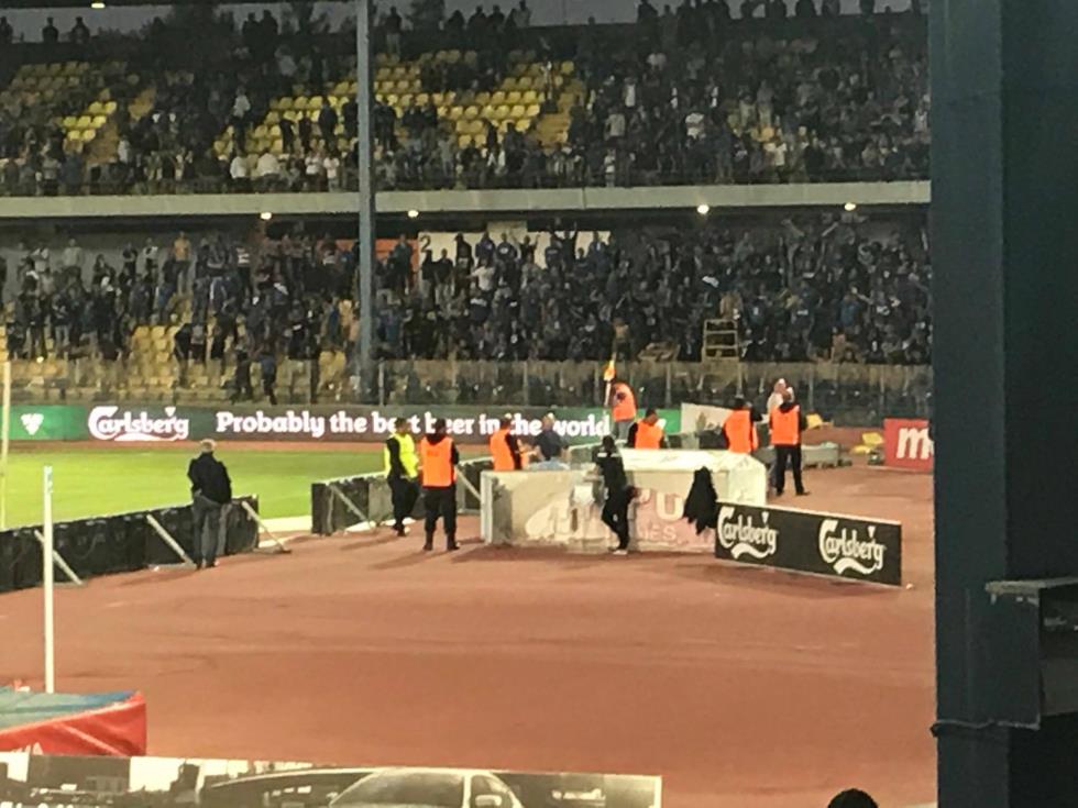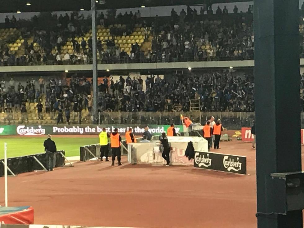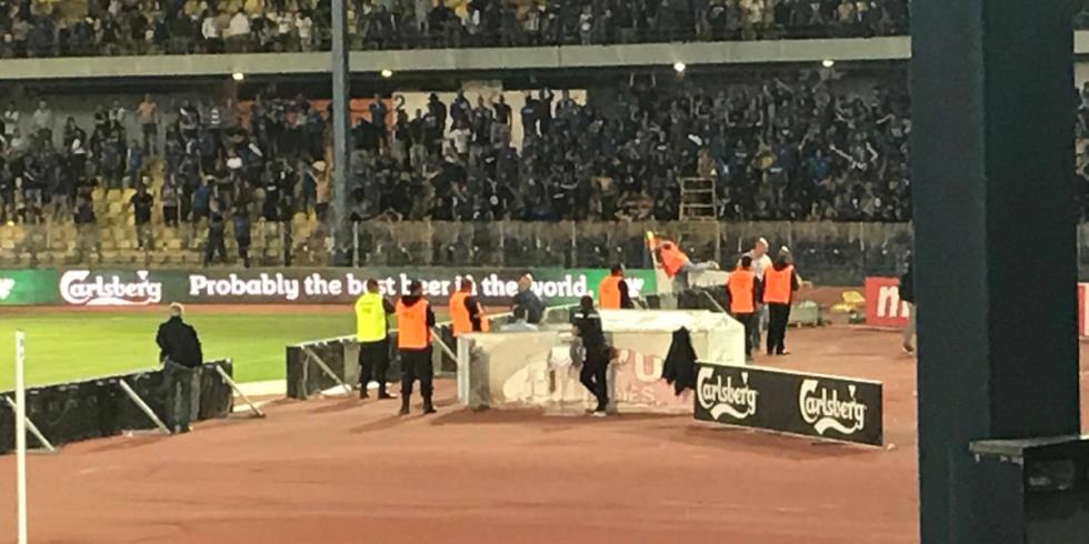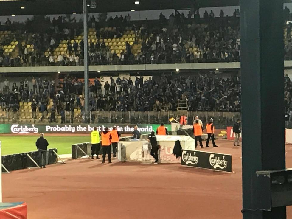 Δευτερόλεπτα μετά οι οπαδοί της Ανόρθωσης έριξαν πίσω το σημαιάκι στον αγωνιστικό χώρο και αφού τοποθετήθηκε στο σημείο δεξιά της εστίας της Ανόρθωσης επανάρχισε η αναμέτρηση.