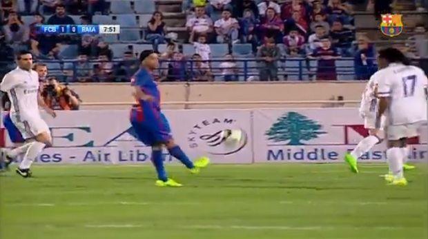 Mία στιγμή μαγείας προσέφερε ο Ροναλντίνιο στην αναμέτρηση παλαιμάχων μεταξύ της Μπαρτσελόνα και της Ρεάλ Μαδρίτης που διεξήχθη το βράδυ της Παρασκευής (28/04) στο Λίβανο.