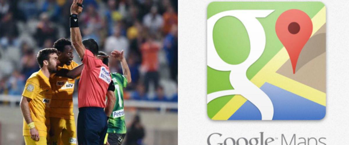 Παράπονα για τη διαιτησία είχε ο ΑΠΟΕΛ στο ντέρμπι με την ΑΕΚ και μετά το παιχνίδι μέσω twitter άφησε υπονοούμενα. Στο ποστάρισμα υπάρχει φωτογραφία του google maps, στο οποίο είχε αναφερθεί η ΑΕΚ παλαιότερα σε παράπονά της.