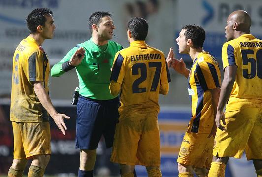 Τόσο πριν (7’ Φέλτσερ) όσο και μετά το γκολ (27’ Οχένε) η ΑΕΛ στερήθηκε ευκαιρίες για γκολ από λανθασμένες υποδείξεις για οφσάιντ με κορυφαία αυτήν του 31’, όταν δόθηκε εις βάρος της οφσάιντ έπειτα από πλάγια επαναφορά. Αδικημένος από τη διαιτησία έκλεισε το πρώτο μέρος και ο οικοδεσπότης, αφού στο 40’ καταλογίστηκε ανύπαρκτο φάουλ στον Μπριγκίντο σε διεκδίκηση με τους Αντράντε και Σιέλη (σ.σ. ακολούθως ο Κεϊτά έστειλε την μπάλα στα δίχτυα).olution=2&Doc=280299" style="width:300px"