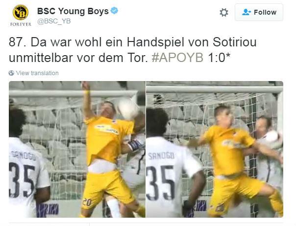 87. Da war wohl ein Handspiel von Sotiriou unmittelbar vor dem Tor. #APOYB 1:0* pic.twitter.com/GJ6B4uHThx