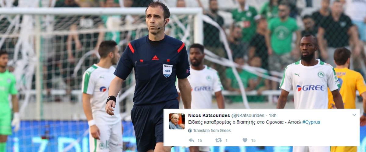 Τη διαιτησία του ντέρμπι Ομόνοιας-ΑΠΟΕΛ σχολίασε με ειρωνικό τρόπο ο πρώην βουλευτής και κοινοβουλευτικός εκπρόσωπος του ΑΚΕΛ, Νίκος Κατσουρίδης.