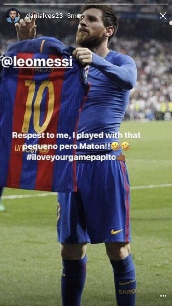 Ο Βραζιλιάνος δεξιός μπακ, επί οκτώ χρόνια συμπαίκτης του Αργεντινού στους «μπλαουγκράνα» και από τους πιο κοντινούς φίλους του, παρακολούθησε τα «μαγικά» του αρχισκόρερ των Καταλανών και κατέφυγε στο instagram ώστε μέσω story να σχολιάσει τον Μέσι.