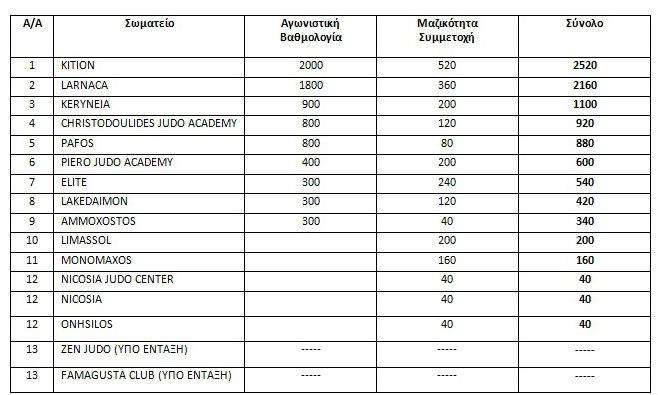 Η ομοσπονδία Τζούντο αισθάνεται την υποχρέωση να συγχαρεί όλους τους αθλητές για την συμμετοχή τους και ευχαριστήσει θερμά τις εταιρείες ΟΠΑΠ, Πετρολίνα και Σουζούκι για τις χορηγίες τους.