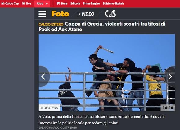 Corriere dello Sport (Ιταλία): "Κύπελλο Ελλάδας, βίαιες συγκρούσεις μεταξύ των οπαδών του ΠΑΟΚ και της ΑΕΚ"