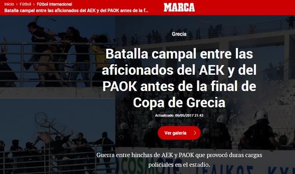 Marca (Ισπανία): "Μάχες μεταξύ οπαδών της ΑΕΚ και του ΠΑΟΚ πριν τον τελικό του Κυπέλλου Ελλάδας"