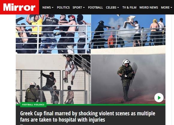 Mirror (Αγγλία): "Ο ελληνικός τελικός επισκιάστηκε από σοκαριστικές σκηνές βίας, με πολλούς οπαδούς να καταλήγουν στο νοσοκομείο ως τραυματισμένοι"