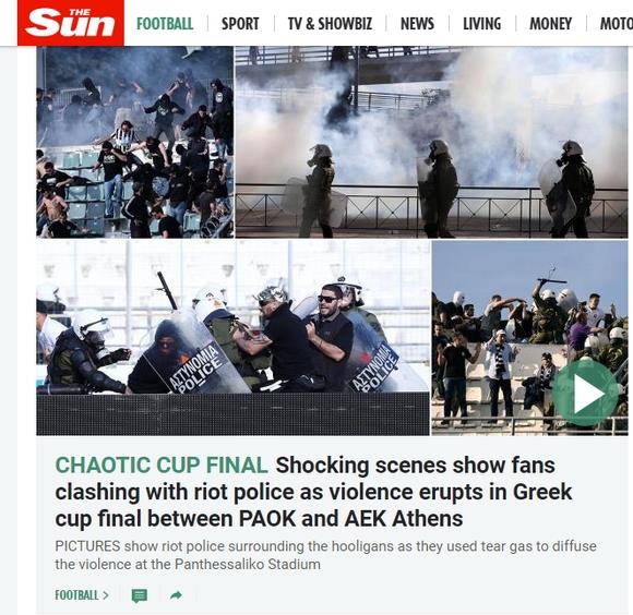 Sun (Αγγλία): "Σοκαριστικές σκηνές που δείχνουν οπαδούς να συγκρούονται με την Αστυνομία".