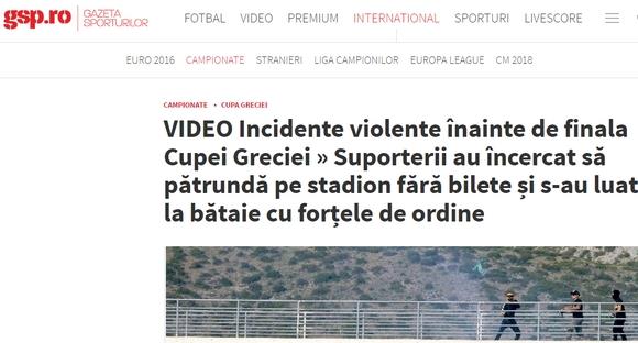 Gazeta Sporturilor (Ρουμανία): "Βίαια επεισόδια στον τελικό Κυπέλλου της Ελλάδας"