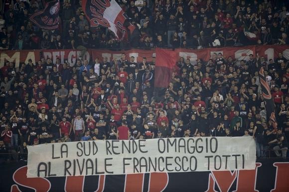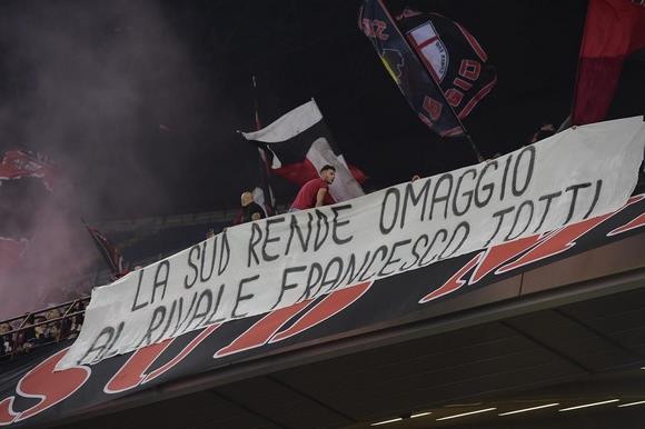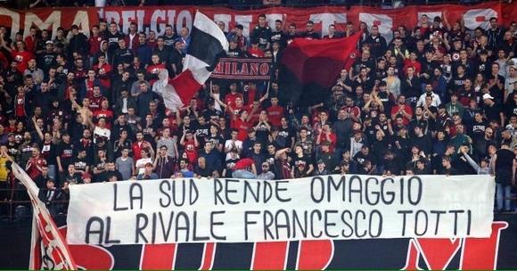"Η Sud (σ.σ. οργανωμένοι οπαδοί Μίλαν) αποτίει φόρο τιμής στον αντίπαλο, Φραντσέσκο Τότι", ήταν το μήνυμα των "ροσονέρι" για τον 40χρονο επιθετικό.