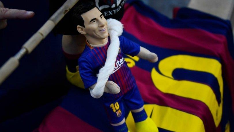 Ο Λιονέλ Μέσι τραυματίστηκε στο χέρι στο ματς της Μπαρτσελόνα με την Σεβίλλη και εμφανίστηκε με δεμένο το χέρι του στο παιχνίδι με την Ίντερ για το Champions League. Κάποιος με μεγάλη φαντασία αποφάσισε να τον μιμηθεί σε ένα... κουκλάκι στις εξέδρες του Καμπ Νόου για το μεγάλο ντέρμπι με την Ρεάλ.