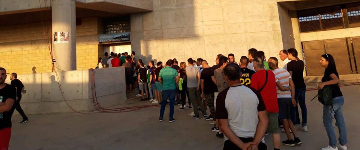 Πλήθος κόσμου μαζεύτηκε για ακόμα μια φορά έξω από το ΓΣΠ στα ταμεία έκδοσης κάρτας φιλάθλου πριν το ντέρμπι με τον Απόλλωνα.
