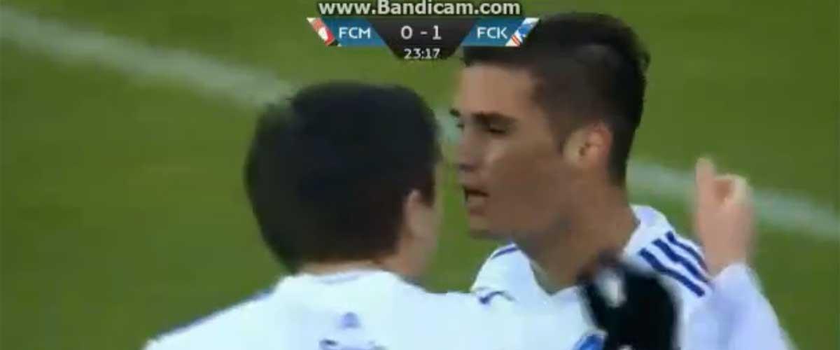 Ο Κύπριος διεθνής επιθετικός σκόραρε το 11ο τέρμα του με τη φανέλα των πρωταθλητών Δανίας στο εκτός έδρας παιχνίδι με την πρωτοπόρο του πρωταθλήματος Μίντιλαντ δίνοντας προβάδισμα 1-0 στην Κοπεγχάγη στο 23΄της αναμέτρησης.