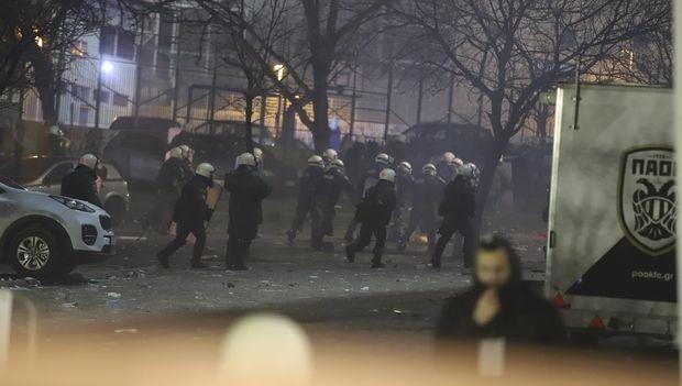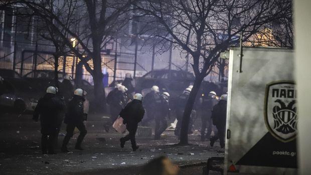Οπαδοί του ΠΑΟΚ συγκεντρώθηκαν στον δρόμο έξω από τα αποδυτήρια της Τούμπας και συγκρούστηκαν με δυνάμεις της αστυνομίας που θέλησε να τους απομακρύνει.